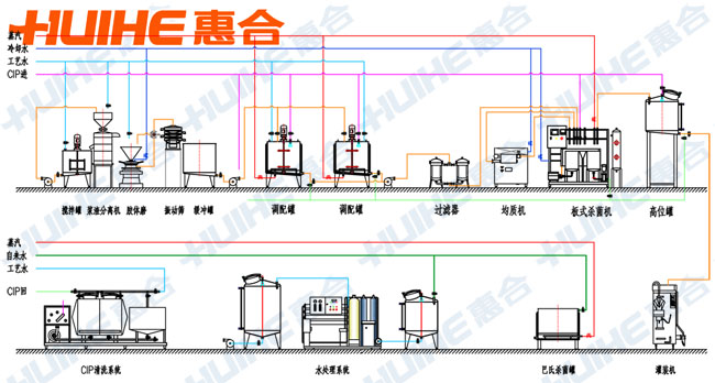 調(diào)配→超高溫瞬時(shí)滅菌→真空脫氣→均質(zhì)→儲(chǔ)存